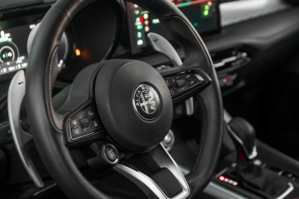 Navigation, All Wheel Drive, Power Liftgate, Satellite Radio, iPod/MP3 Input, Onboard Communications System, Aluminum Wheels, Remote Engine Start, Dual Zone A/C, Blind Spot Monitor Rear Spoiler, MP3 Player, Remote Trunk Release, Keyless Entry. Alfa Romeo Veloce with Grigio Ascari Metallic exterior and Black interior features a 4 Cylinder Engine. CARFAX 1-Owner Reduced from $30,998.