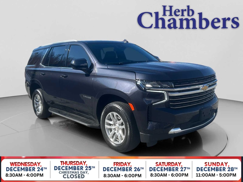 Service Work completed on this Chevrolet Tahoe includes: Total Value: $2,405. Synthetic Oil and Filter Change, 4 Tires Replaced, Wheel/Tire Balance, Engine Air Filter Replaced, 4 Wheel Alignment, Professional Detailed Inside and Out. Serviced here Only a Herb Chambers CERTIFIED Pre-Owned vehicle receives a Rigorous Multi-Point Inspection 5-Day 100% Money Back Guarantee / 30-Day, 1,500 Mile Vehicle Exchange and a Portfolio & CarFax. Visit www.herbchamberssmartpricing.com and https: //www.herbchambers.com/guarantee-details.htmfor for complete details.
