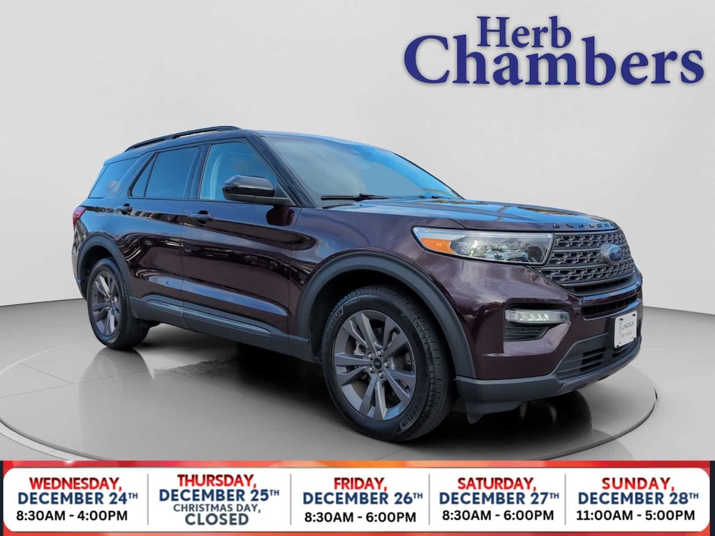 EQUIPMENT GROUP 202A SecuriCode Keyless Entry Keypad, Acoustic-Laminated Front Side Windows, Remote Start System, Heated Steering Wheel, LED Fog Lamps, silver-painted front skid plate elements, XLT SPORT APPEARANCE PACKAGE carbonized gray-painted grille bars and mesh insert, liftgate applique, lower body side cladding insert, skid plate elements, carbonized gray EXPLORER badge on hood, stretch diamond instrument panel appliques, ebony/light slate seats w/medium slate contrast stitching in all rows, unique light slate door-trim panel insert w/contrast stitching and sideview mirrors w/gloss black caps, Wheels: 20 10-Spoke Carbonized Gray-Painted, Tires: P255/55R20 AS BSW, Dual Chrome Exhaust Tips, TWIN PANEL MOONROOF, FORD CO-PILOT360 ASSIST+ Speed Sign Recognition, Voice-Activated Touchscreen Navigation System, pinch-to-zoom capability, SiriusXM Traffic and Travel Link, Note: SiriusXM Traffic and Travel Link includes a, SiriusXM Traffic and Travel Link service is not available in Alaska or Hawaii, After your trial period ends, Sirius XM audio and data services each require a subscription sold separately, or as a package, by SiriusXM Radio Inc, See SiriusXM customer agreement for complete terms at www.siriusxm.com, All fees and programming subject to change, Trial subscriptions not available in Alaska and Hawaii, Evasive Steering Assist, Intelligent Adaptive Cruise Control, stop-and-go and lane centering, CLASS IV TRAILER TOW PACKAGE, JEWEL RED METALLIC TINTED CLEARCOAT, FRONT & SECOND ROW FLOOR LINERS (16B): standard front and second row carpet floor mats, TRANSMISSION: 10-SPEED AUTOMATIC (STD), ENGINE: 2.3L ECOBOOST I-4: auto start-stop technology (STD), EBONY/LIGHT SLATE, HEATED ACTIVEX CAPTAINS CHAIRS: 10-way power driver (power function for tilt, lumbar and recline), 8-way power passenger (power function for lumbar and recline) and 2-way manually adjustable driver and front passenger head restraints.